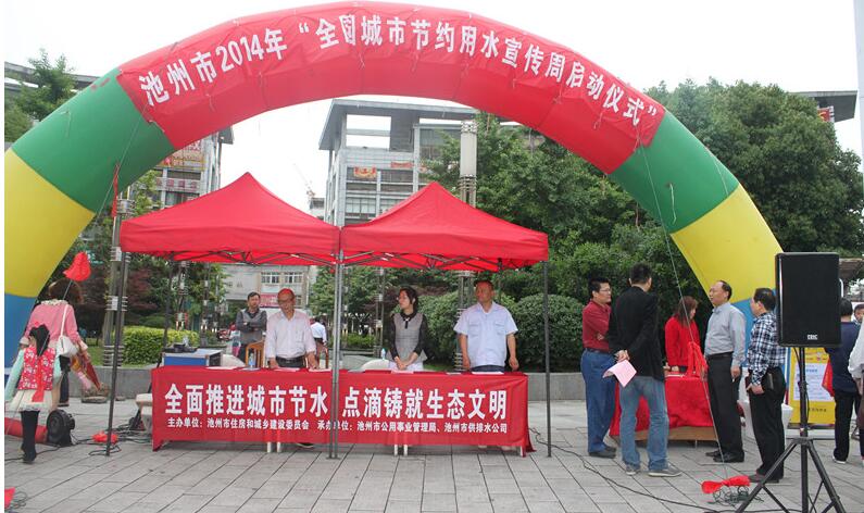 今年5月11日至5月17日是全國第23個節約用水宣傳周,本次“節約用水宣傳周”活動主題為:全面推進城市節水,點滴鑄就生態文明。2014年5月11日,池州市在市中心地段秋浦花園廣場舉辦了第23個節約用水宣傳周的活動的啟動儀式,據悉,本次活動由池州市住房和城鄉建設委員會主辦,池州市公用事業管理局、池州市供排水公司承辦。省住建廳趙處長,市住建委副主任余祖平,市公用事業局局長李應友、市供排水公司吳小平總經理參加了本次活動。