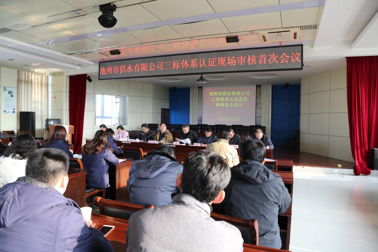 2016年12月29-31日,經(jīng)過第三方上海恩可埃認(rèn)證有限公司專家為期三天的審核,池州市供水有限公司“三標(biāo)一體”管理體系即質(zhì)量、環(huán)境、職業(yè)健康安全管理體系運行符合標(biāo)準(zhǔn)要求,順利通過認(rèn)證審核,正式獲得“三標(biāo)一體”管理體系認(rèn)證。