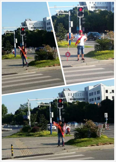 2017年7月16日,池州市供水公司組織交通志愿者參加安全文明交通志愿行動。炎炎烈日,身浴熱浪,小紅帽志愿服務者手持交通勸導桿分別在清風與東湖路、清風路和長江路交叉口,協助交警維持交通,車輛、行人井然有序通行