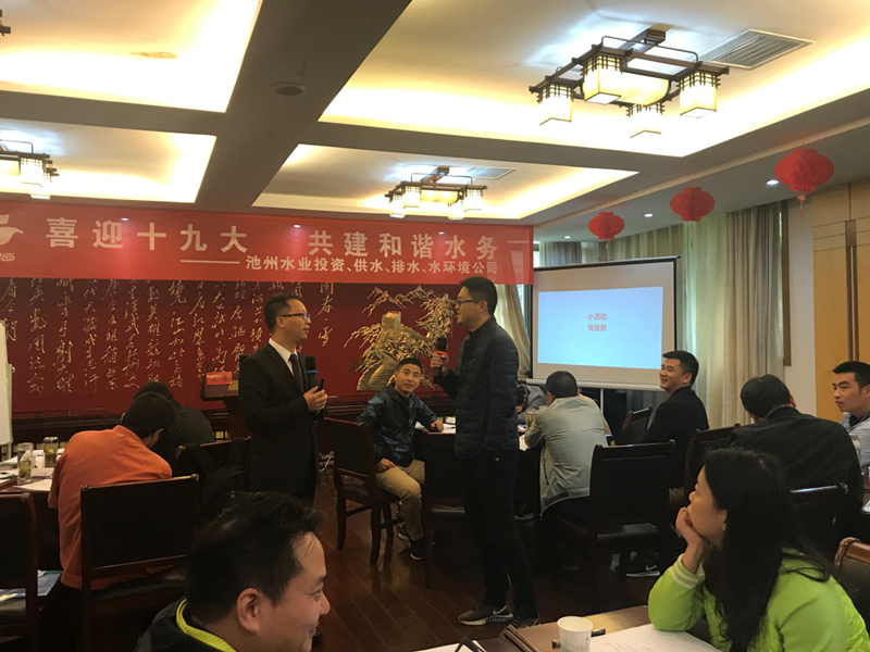 為慶祝黨的十九大勝利召開,深入學(xué)習(xí)領(lǐng)會十九大精神,接受紅色教育,提升管理人員的團(tuán)隊(duì)意識和溝通技巧,近日,池州市水業(yè)公司、供水公司、排水公司、水環(huán)境公司聯(lián)合舉辦“喜迎十九大  共建和諧水務(wù)中層及以上管理人員拓展培訓(xùn),來自四家公司共50余名中、高層管理人員利用周末時(shí)間分二批次參加了培訓(xùn)。