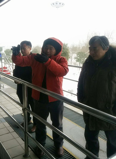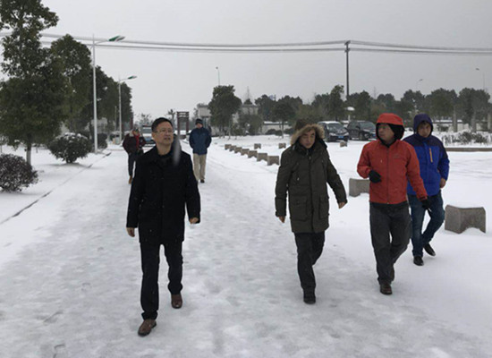 2018年1月27日上午,池州市住建委主任張良浩、副主任許作峰、公用事業(yè)局李應友局長在池州市供水有限公司鐘誠董事長、寧加寶副總經理的陪同下,一行冒冰雪嚴寒來到池州市供水有限公司江口水廠檢查暴雪天氣供水安全生產情況。