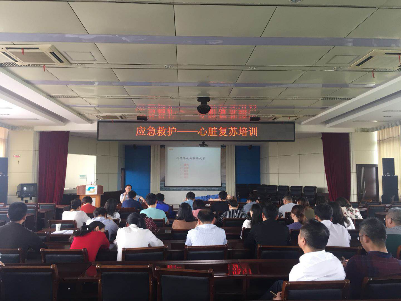 為全面提高全體員工的安全意識,提升應對突發事件和意外傷害事故的應急救援和自救互救能力,池州市供水有限公司于4月20日下午在四樓會議室舉辦了一期應急救護——心臟復蘇培訓。公司機關全體人各部門副職以上人員、以及受邀參加的水業投資公司、排水公司、水環境公司部門負責人共計50余日加培訓。