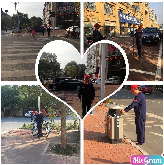志愿者們走上街頭、對聯(lián)系路段擺放混亂的共享單車、電動車等進(jìn)行整理擺放整齊;清理白色垃圾、墻壁、路燈等地的小廣告