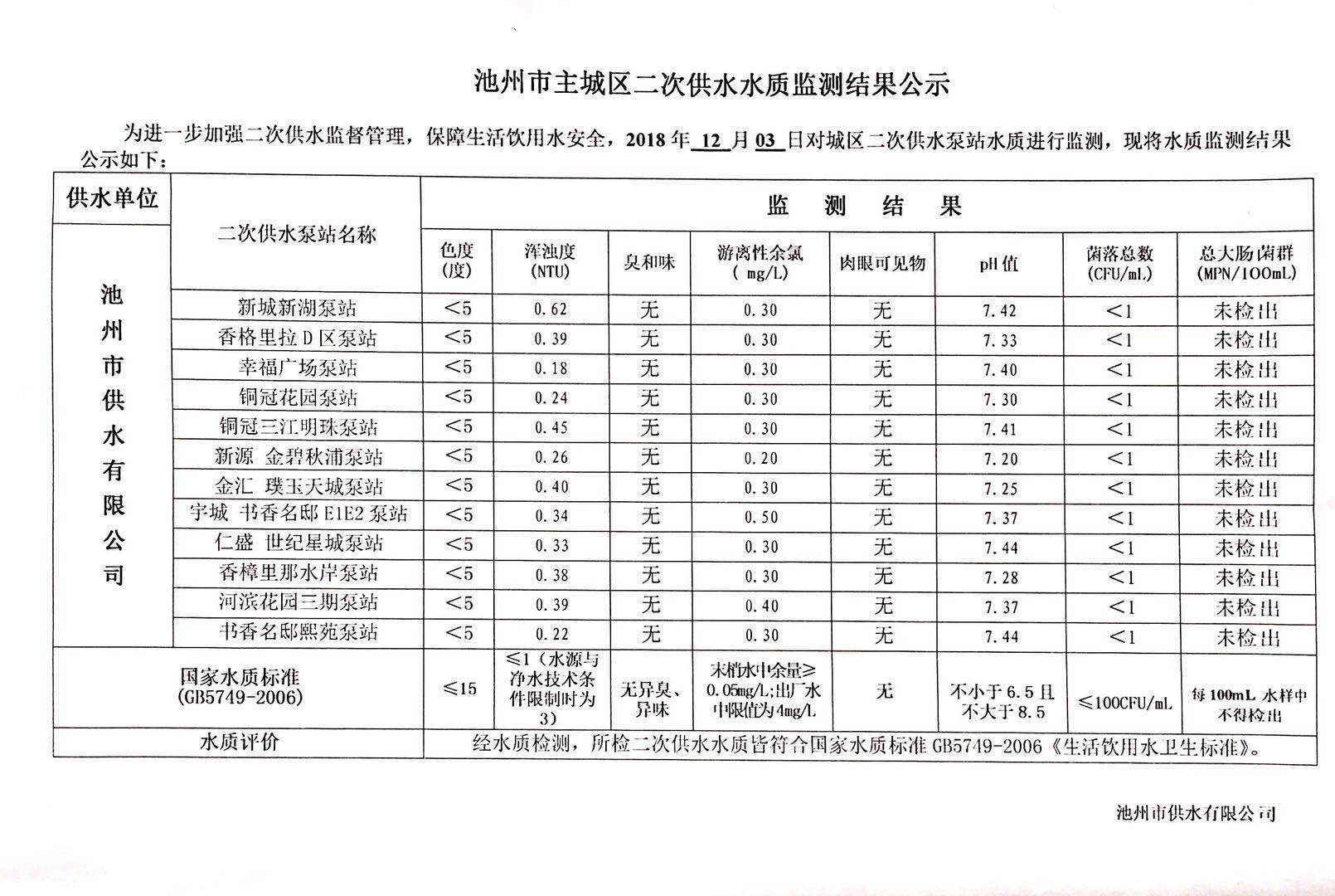 | 池州市主城區(qū)二次供水水質(zhì)監(jiān)測(cè)結(jié)果公示(2018.12.03) | |