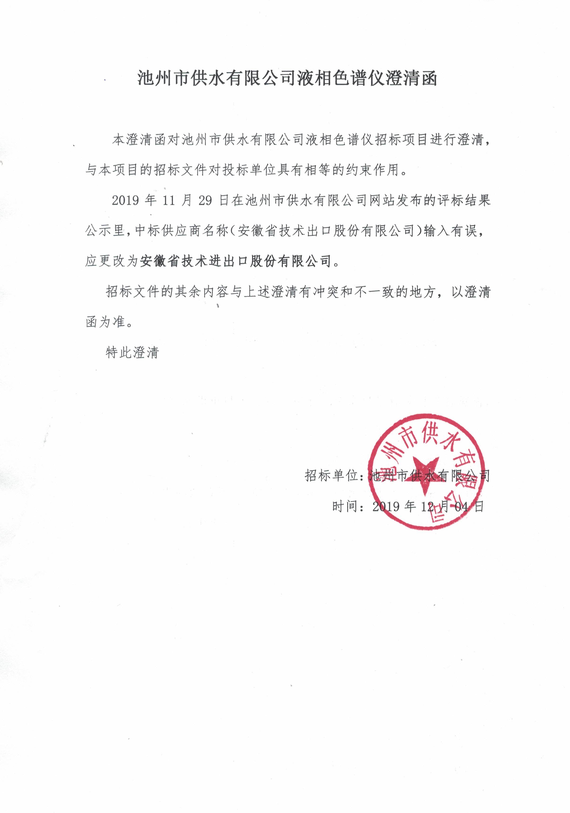 | 池州市供水有限公司液相色譜儀澄請(qǐng)函 | |