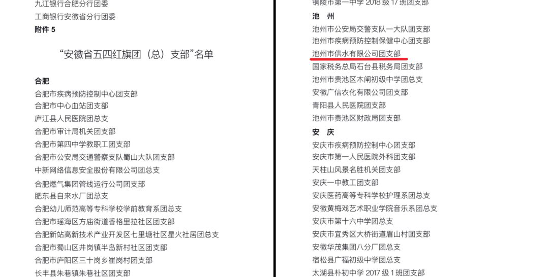 在五四青年節來臨之際 ,共青團安徽省委下發表彰,對2019年度安徽省優秀共青團員、團干部和先進基層團組織進行表彰。其中池州市供水有限公司團支部榮獲“安徽省五四紅旗團支部”榮譽稱號。