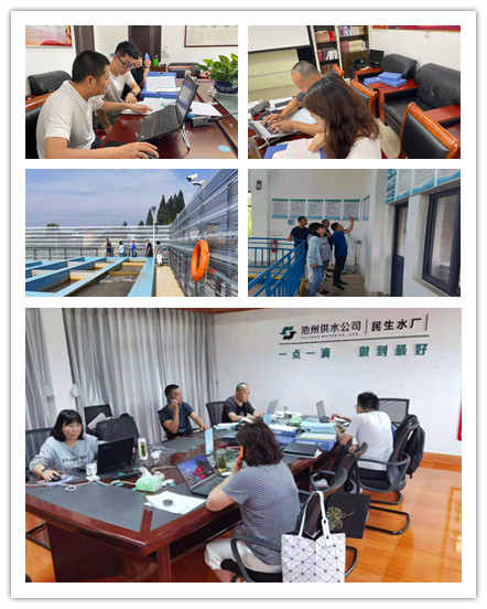 審核組在四天的審核中,根據三標認證體系標準、相關法律法規、規范要求和池州供水公司體系文件,分別對公司高層領導、三標體系小組、綜合辦等部門進行審核。審核范圍從產品和服務過程策劃、實施,到體系運行監控和持續改進,涉及目標指標完成情況、工藝流程、不合格品控制、環境因素、危險源、特種作業人員管理、法律法規識別更新、人力資源等全方位、全流程。同時4位專家還深入民生水廠、管網部、客服部等生產、服務現場進行審核。