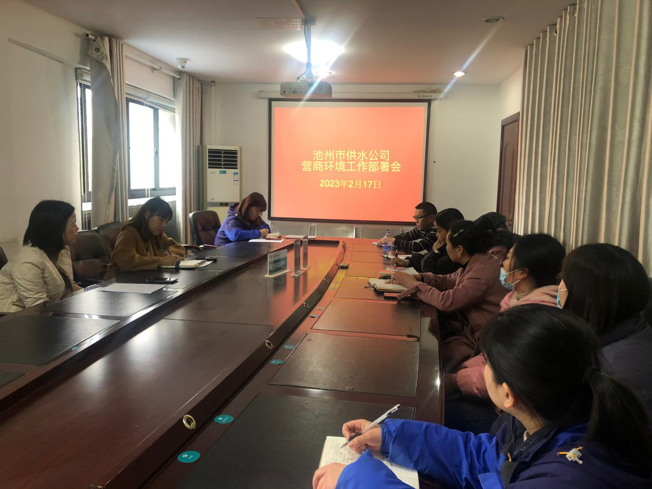 為推進新一輪的營商環(huán)境工作,2月17日下午,池州市供水公司營商環(huán)境工作小組召開了2023年營商環(huán)境工作部署會。營商環(huán)境工作小組組長、公司工會主席施潔主持會議,營商環(huán)境工作小組全體工作人員參加了會議。