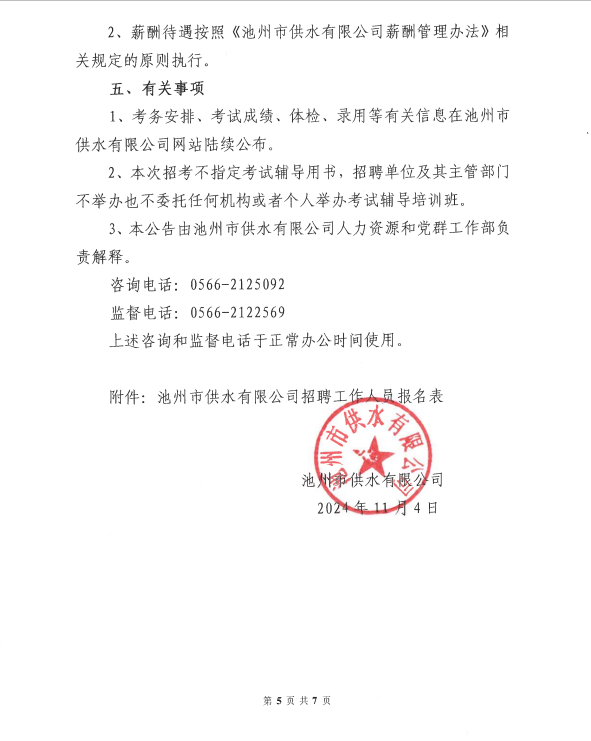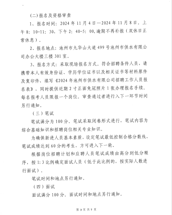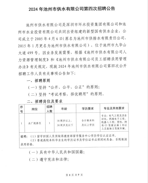 | 2024年池州市供水有限公司第四次招聘公告 | |
