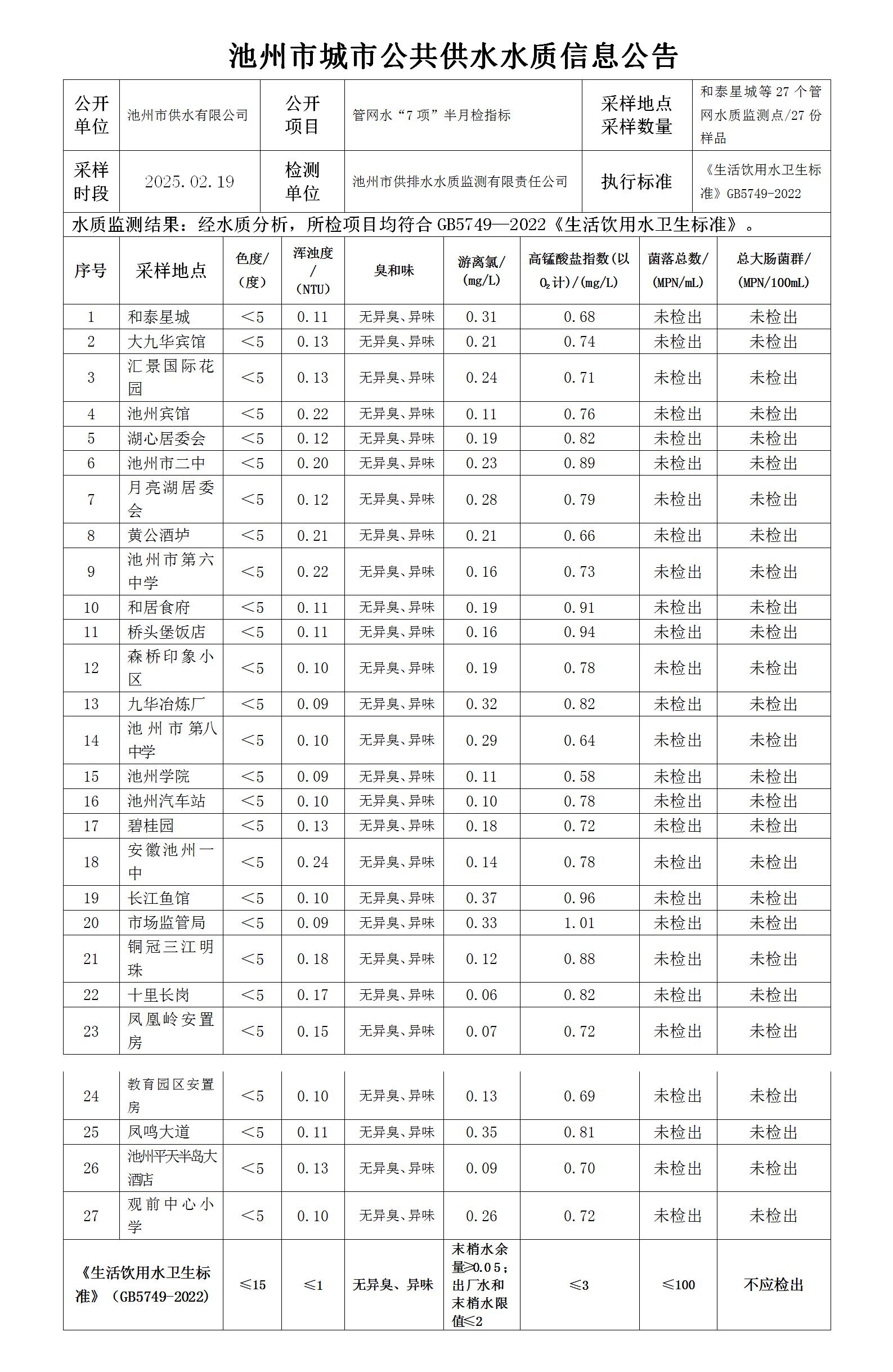 | 池州市城市公共供水水質信息公告管網水“7項”半月檢指標2-2 | |