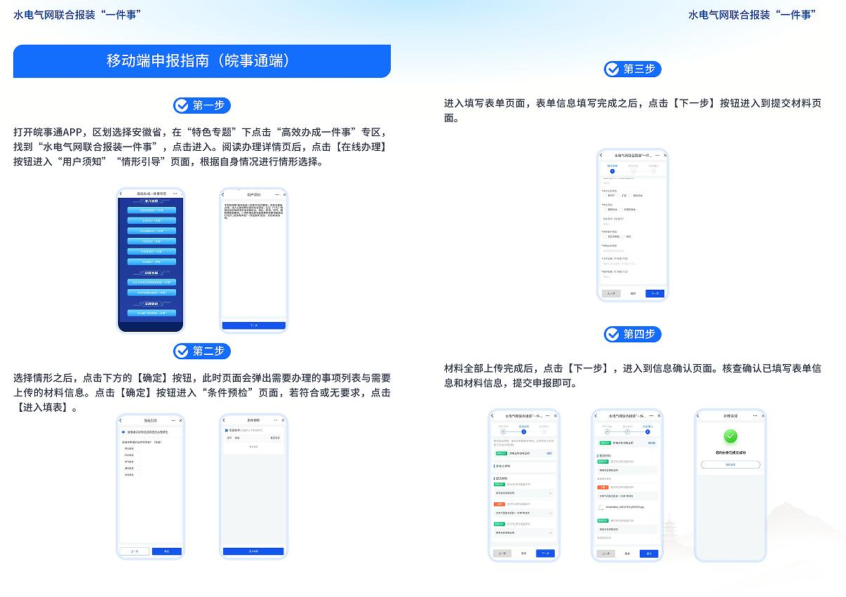 水電氣網(wǎng)聯(lián)合報裝“一件事”移動端申報指南(皖事通端)