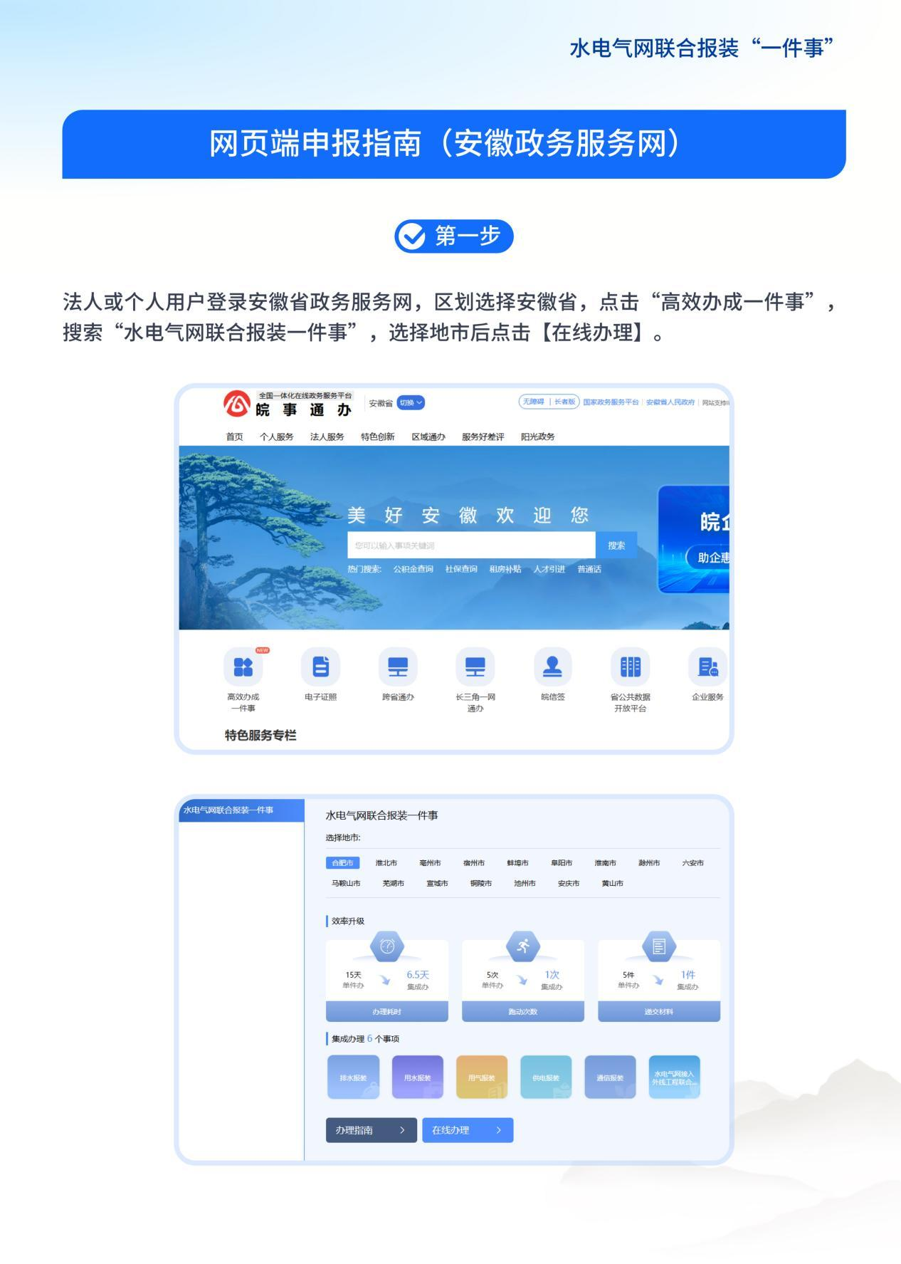 水電氣網(wǎng)聯(lián)合報裝“一件事”網(wǎng)頁端申報指南(安徽政務(wù)服務(wù)網(wǎng))