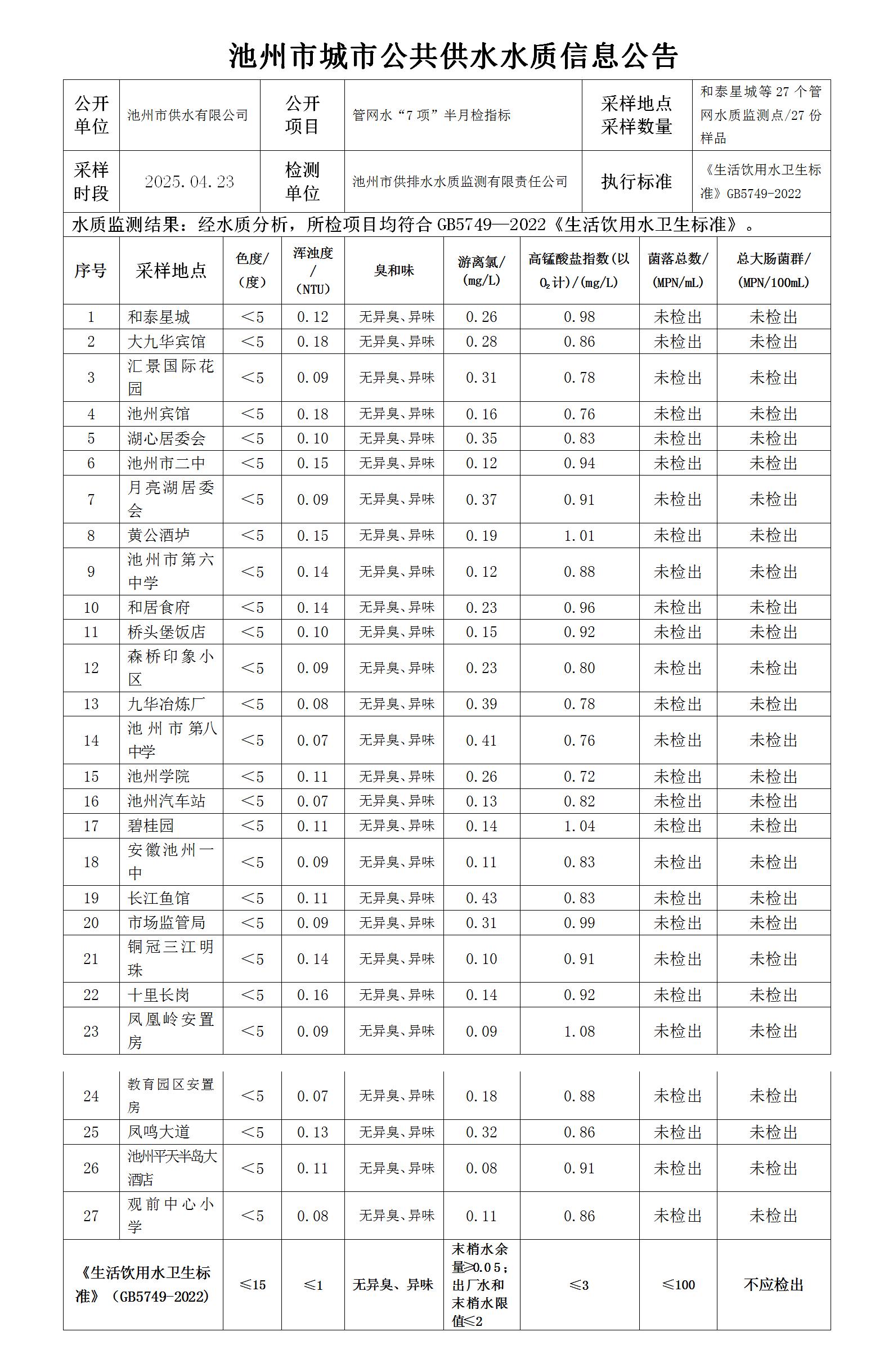 | 池州市城市公共供水水質(zhì)信息公告管網(wǎng)水“7項(xiàng)”半月檢指標(biāo)4-2 | |