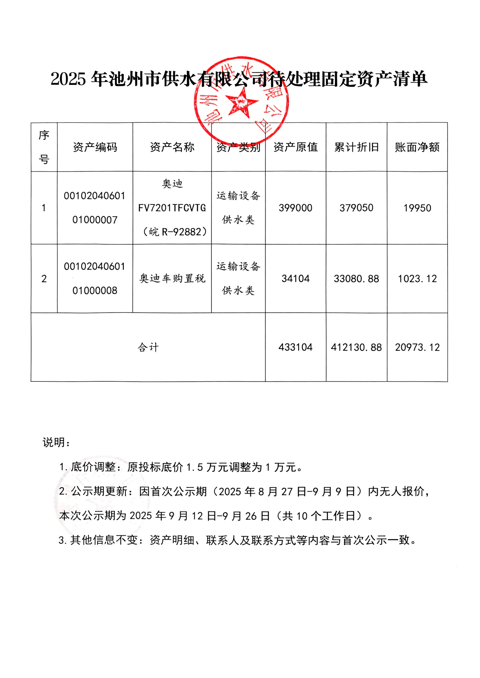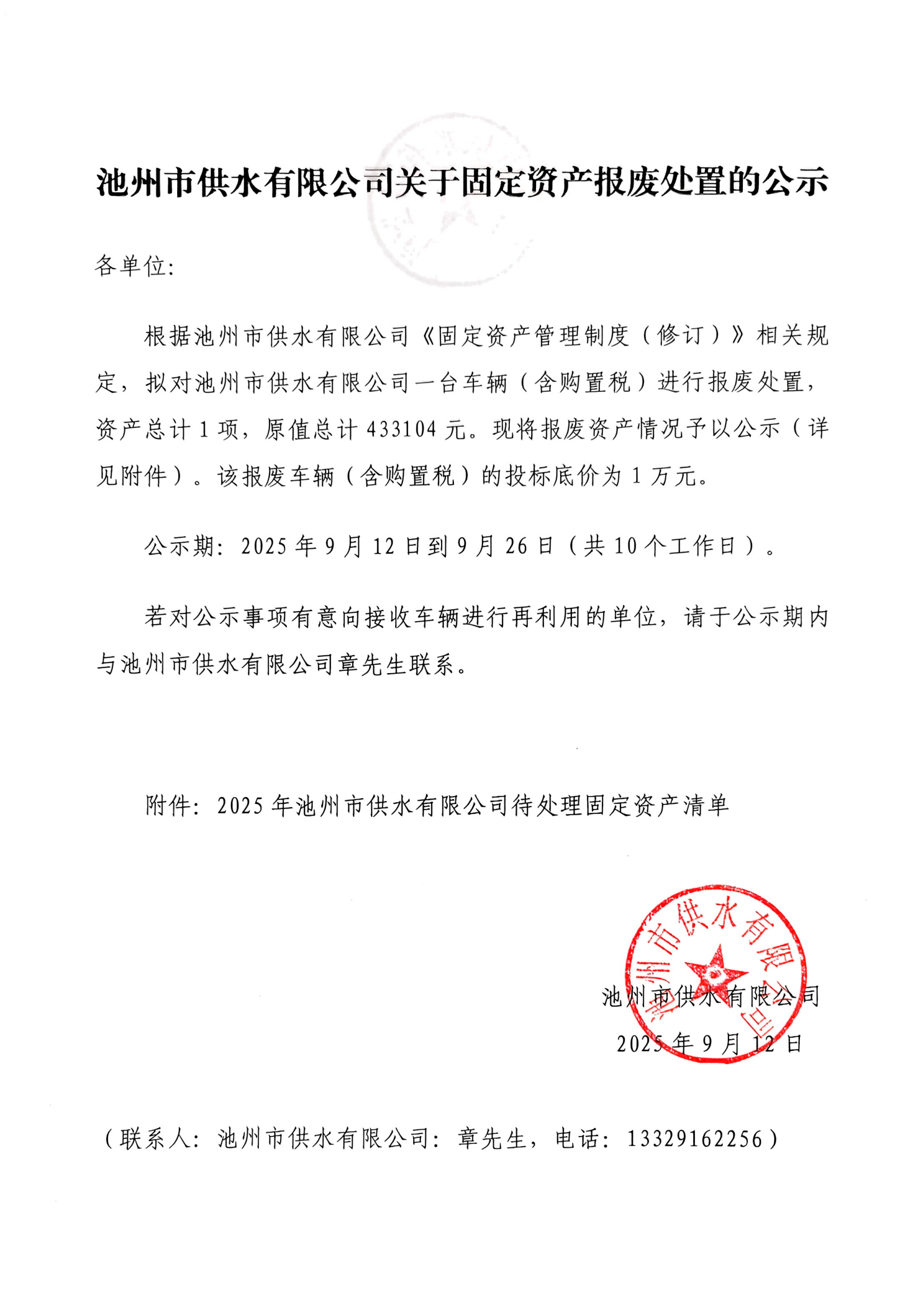 | 池州市供水有限公司關于固定資產報廢處置的公示 | |