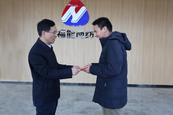 集團(tuán)公司紀(jì)委(監(jiān)察專員辦)綜合室有關(guān)人員、福能南紡公司領(lǐng)導(dǎo)班子成員等參加了此次慰問(wèn)活動(dòng)。(詹旺秀/文 蔡常春/圖)