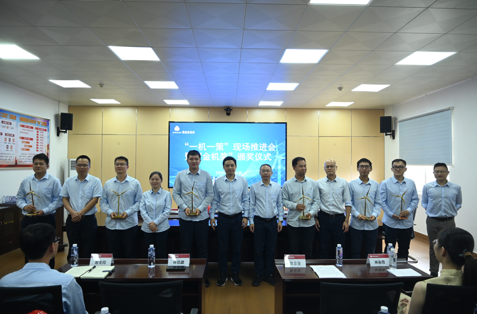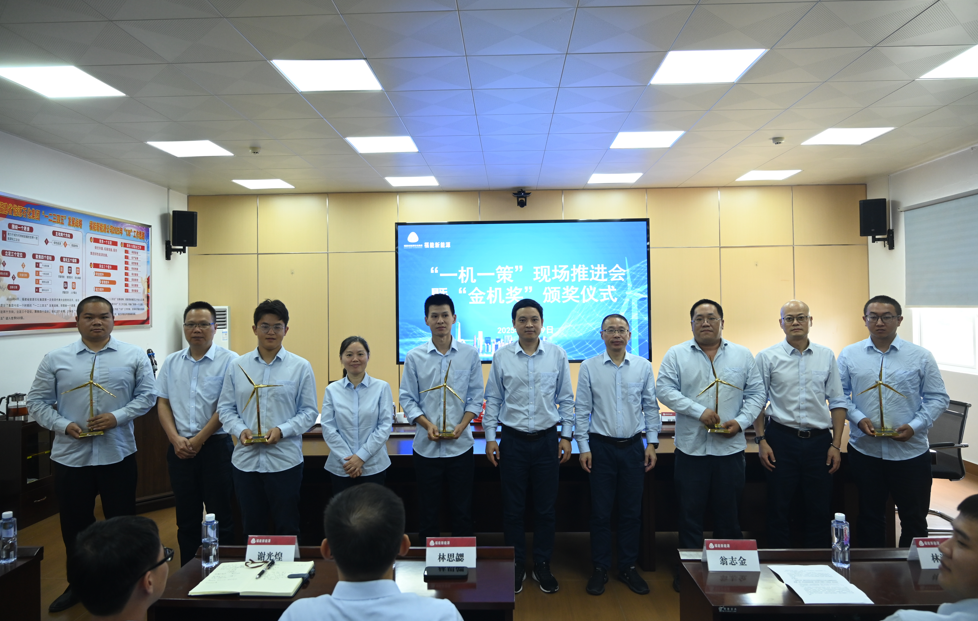 8月29日,公司在頂巖山風(fēng)電場召開“一機一策”現(xiàn)場推進會暨“金機獎”頒獎儀式。會議全面回顧總結(jié)“一機一策”實施以來的工作成效,提煉寶貴經(jīng)驗,表彰在機組運行維護中表現(xiàn)突出的先進個人,并特別邀請了獲獎職工家屬共同見證榮耀時刻,增強團隊凝聚力,為公司下半年接續(xù)奮勇提升打下堅實基礎(chǔ)。