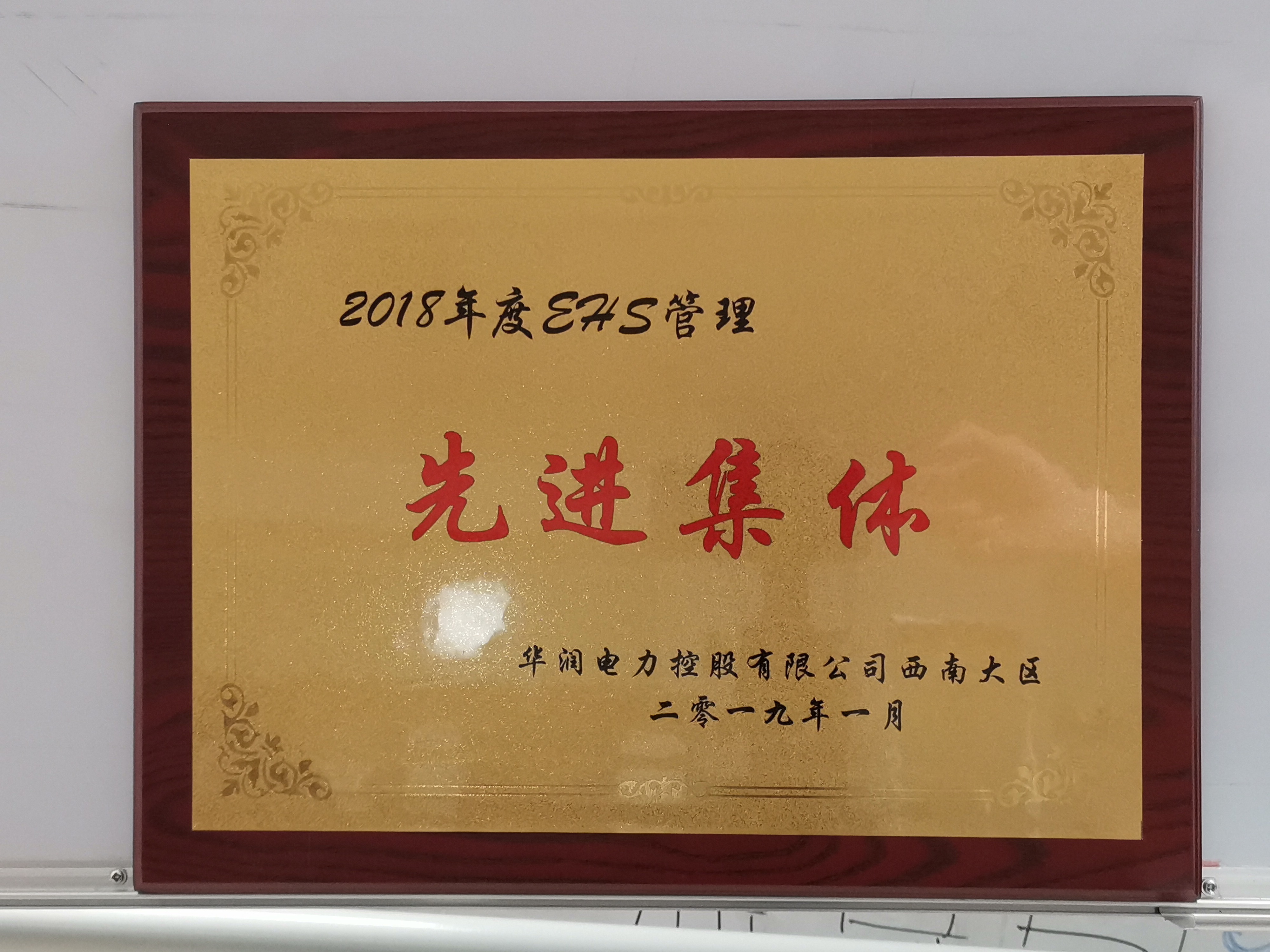 2019年獲得華潤(rùn)電力西南大區(qū)頒發(fā)的“2018年度EHS管理先進(jìn)集體”