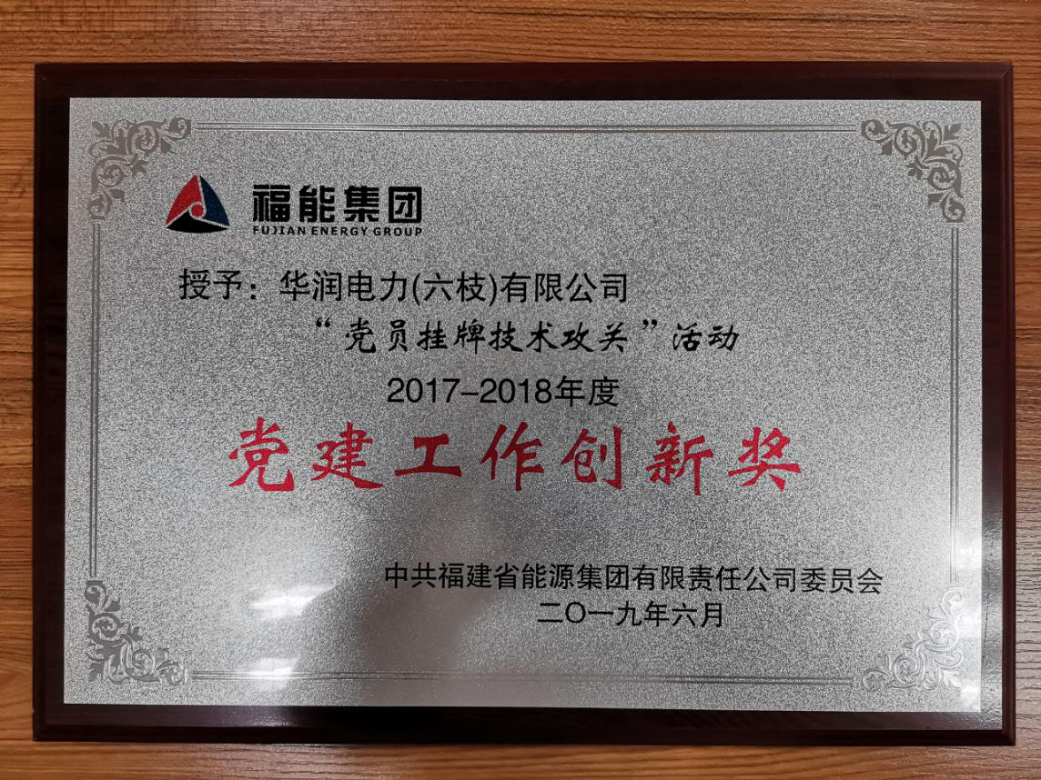 2019年獲得中共福建省能源集團(tuán)有限責(zé)任公司委員會(huì)頒發(fā)的““黨員掛牌技術(shù)攻關(guān)”活動(dòng)2017-2018年度黨建工作創(chuàng)新獎(jiǎng)”