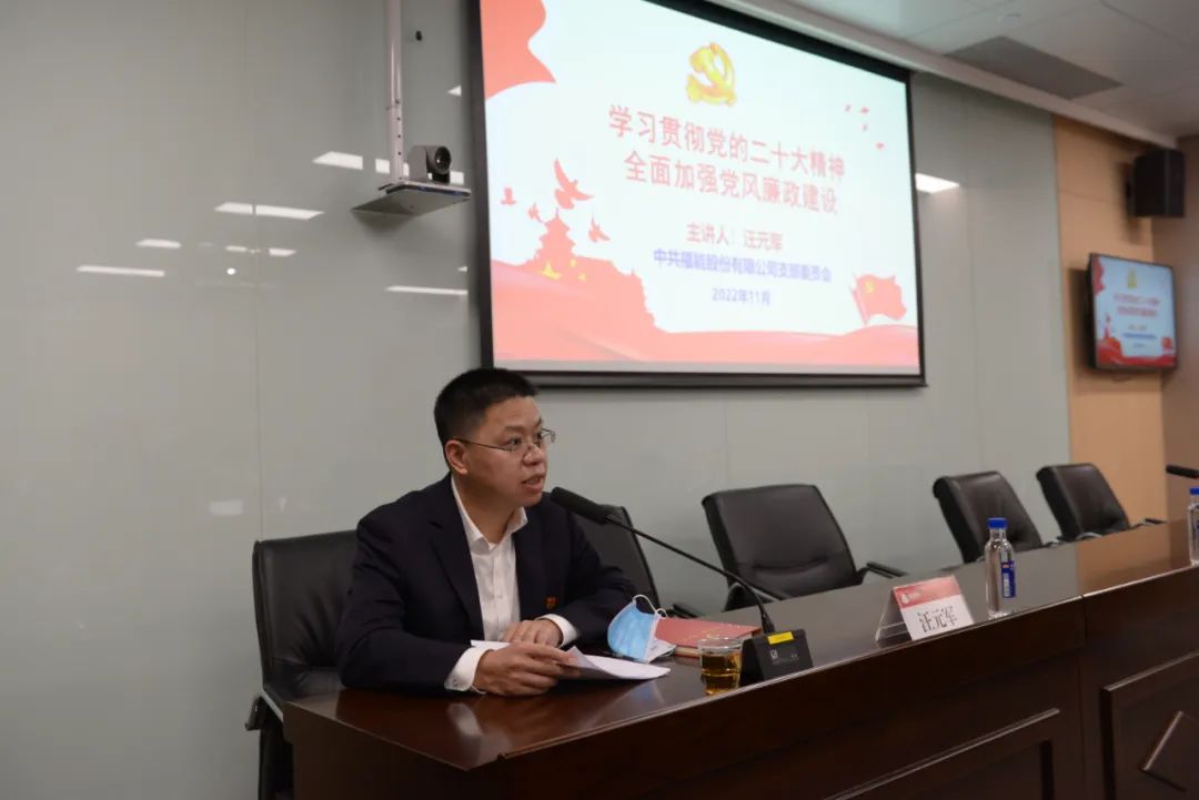 公司黨支部紀(jì)檢委員汪元軍以《學(xué)習(xí)貫徹黨的二十大精神 全面加強(qiáng)黨風(fēng)廉政建設(shè)》為題,圍繞加強(qiáng)國企黨風(fēng)廉政建設(shè)的重要意義、如何抓好黨風(fēng)廉政建設(shè)、全面從嚴(yán)治黨不忘初心三個(gè)方面進(jìn)行闡釋。