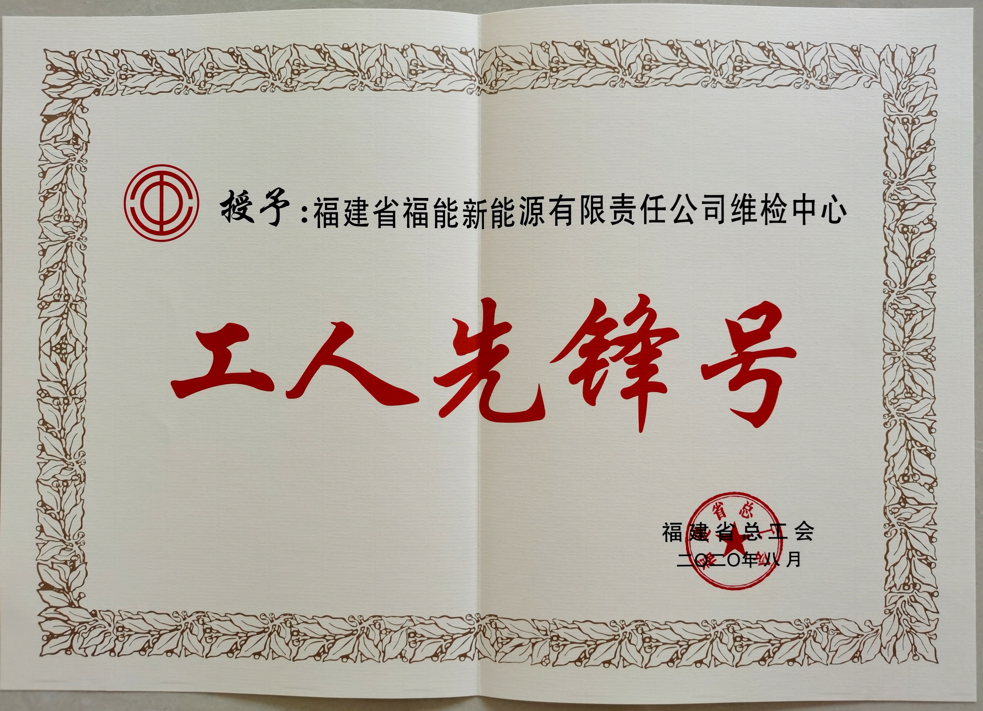 2020福建省工人先鋒號2