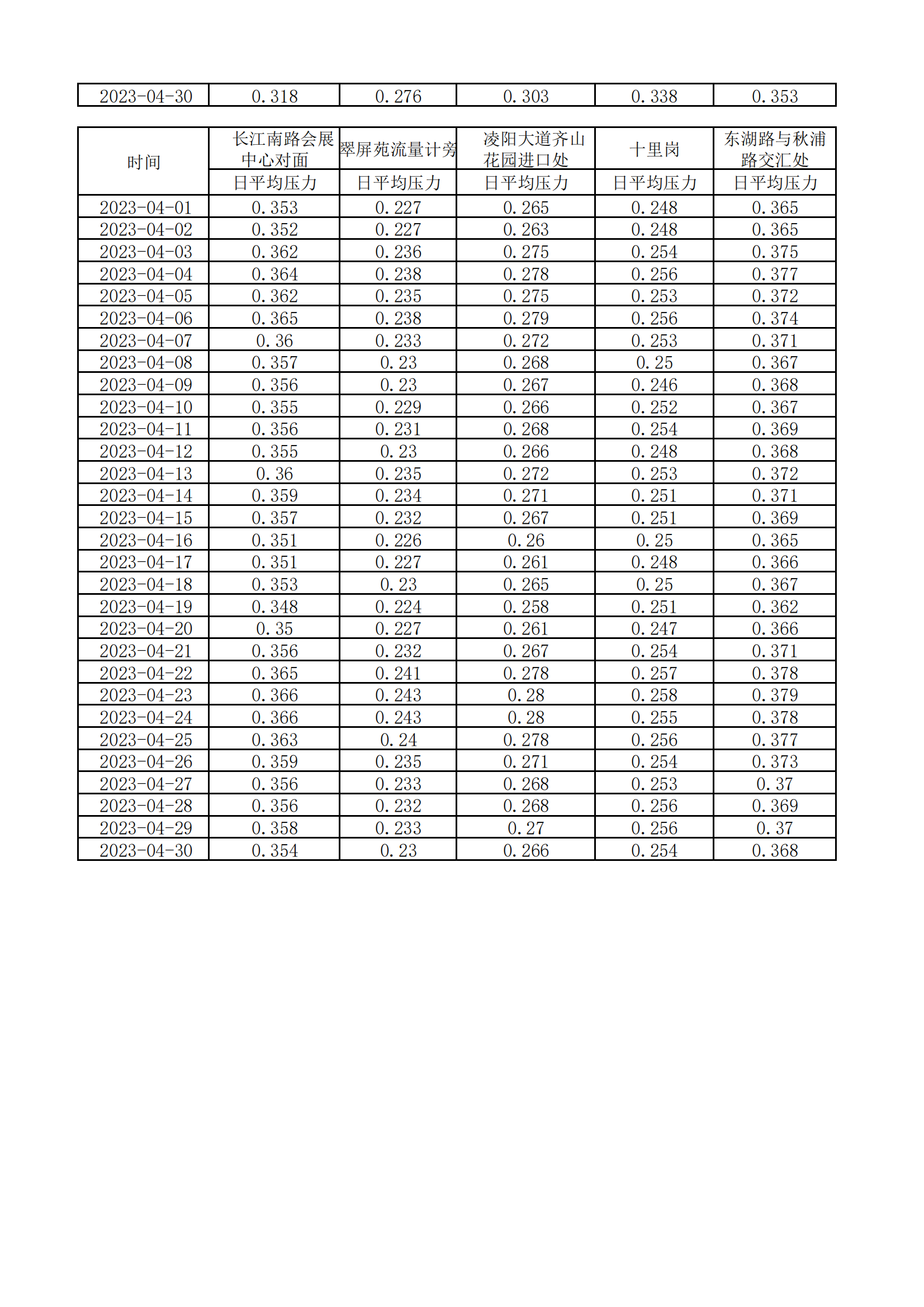 | 池州市供水有限公司 2023 年4月水壓 公告 | |