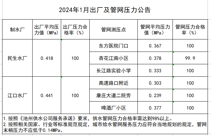 ----------------------------------------------------------------------------------- 上一篇:池州市城市公共供水水質信息公... 下一篇:2024年2月出廠及管網壓力... |