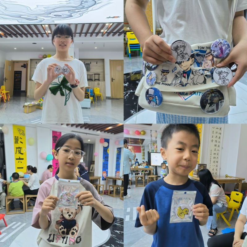 本次活動以“玩中學、學中樂”為宗旨,通過趣味游戲、手工實踐等形式,為兒童提供多樣化成長體驗。活動設置的項目豐富多彩,有親手制作流行單品“吧唧”、非遺文化扎染體驗,親子小游戲“找媽媽”“找寶寶”